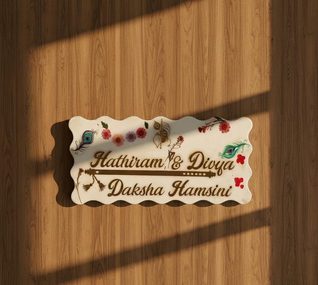 Elevate your space with this stunning Glossy White Resin Plate (20 x 8 inches), beautifully designed with a delicate feather accent. The high-gloss white finish gives it a clean, luxurious, and modern look, making it a perfect statement piece for entrances, nameplates, studios, offices, or gifting.