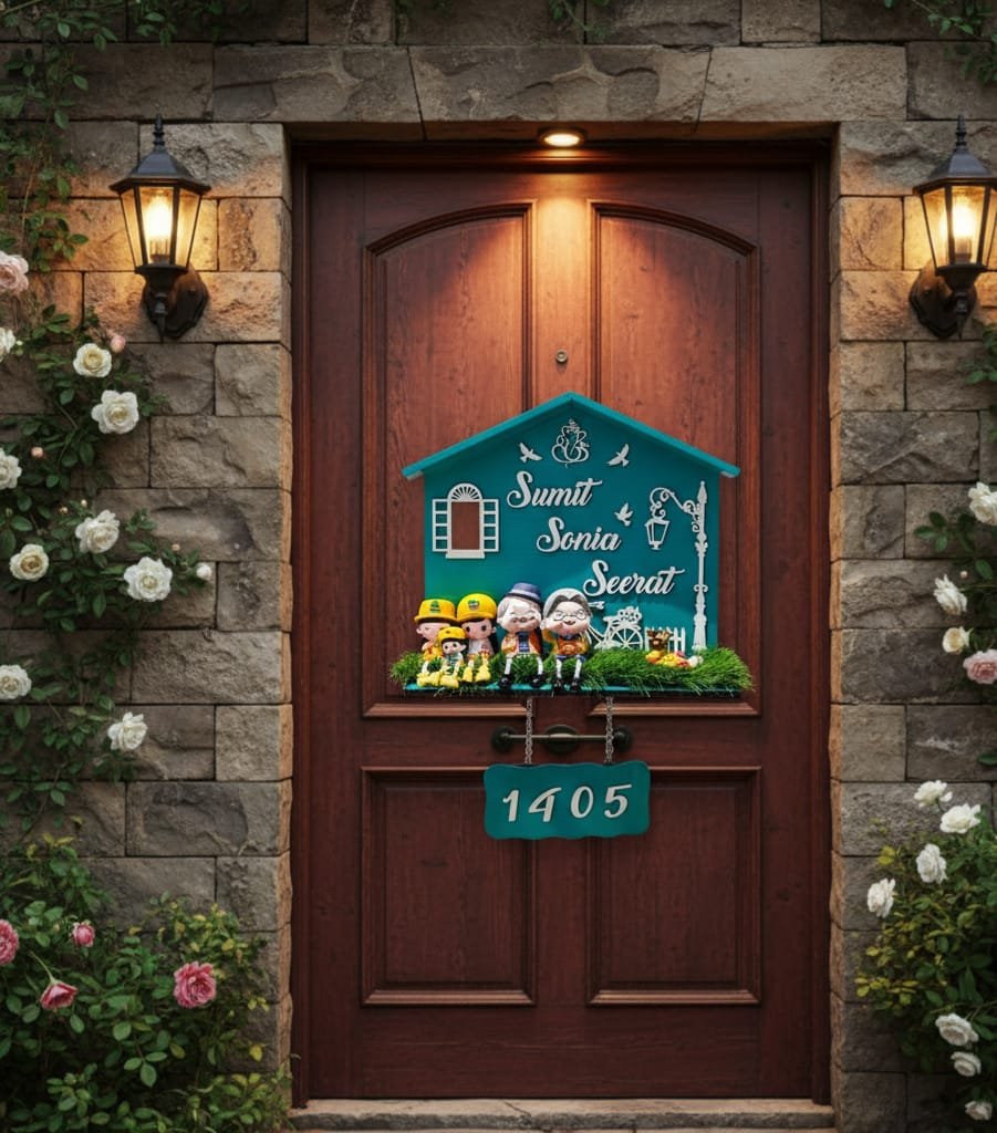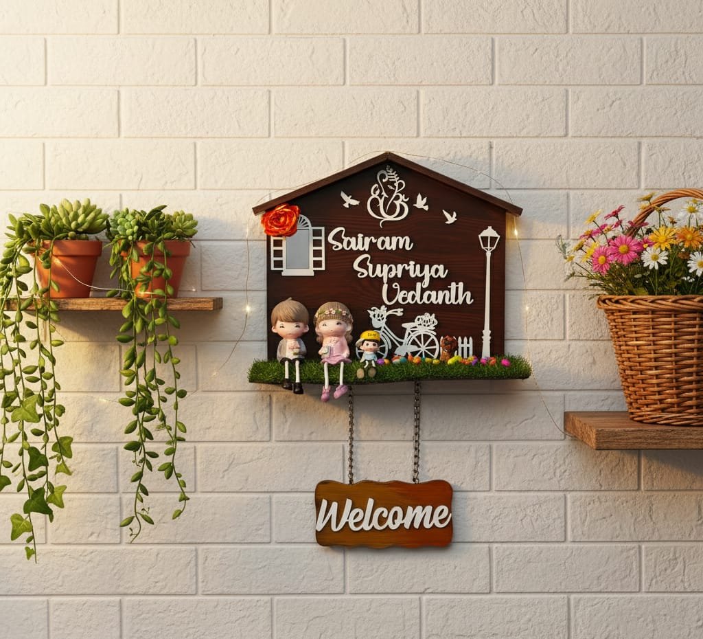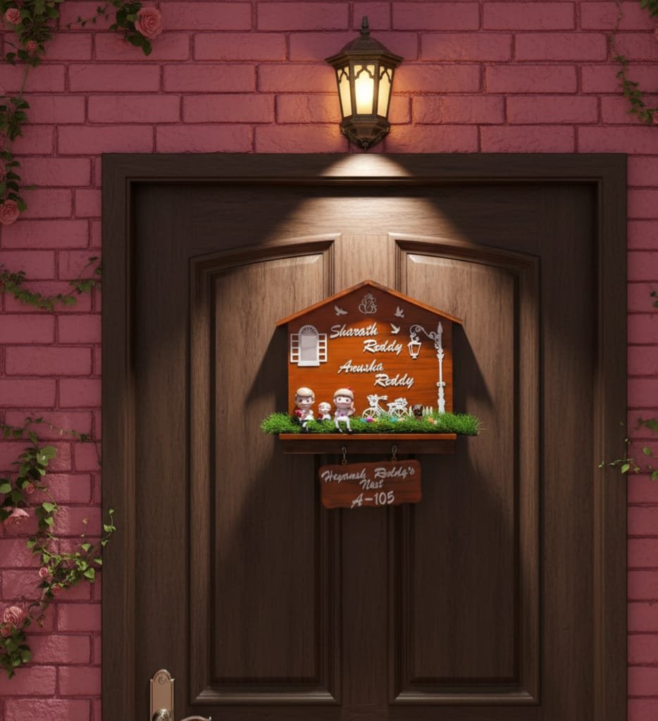 Turn your doorway into a charming little story with our Hut Plate with Miniatures (19 x 23 inches). This beautifully designed nameplate features a detailed hut theme, decorated with adorable miniature elements that make it look lively and unique.