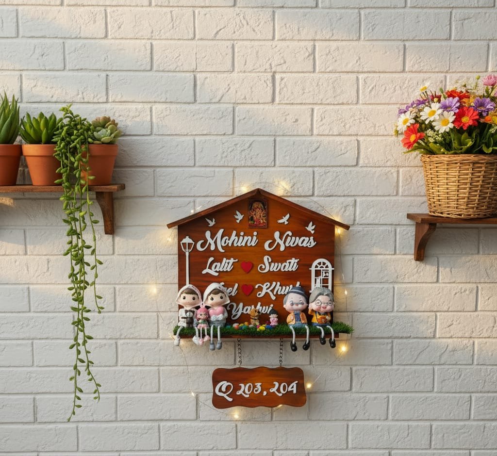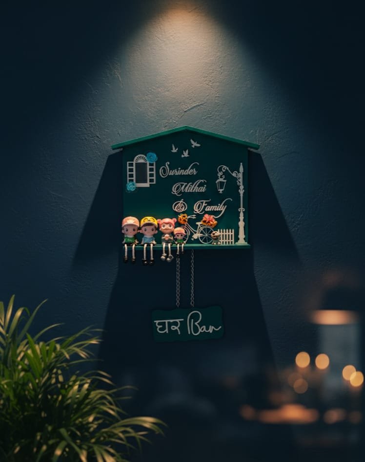Each plate comes with thoughtfully arranged décor pieces like a grass mat, puppy, dolls, mirrors, rocks, and more, creating a warm, homely, and artistic feel. Handcrafted with care, it is perfect for families who love creative, personalized, and aesthetic home décor.