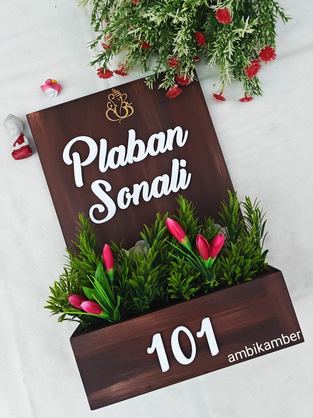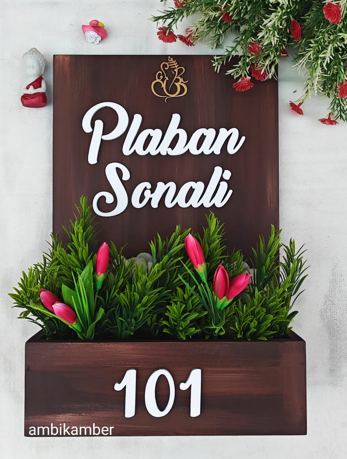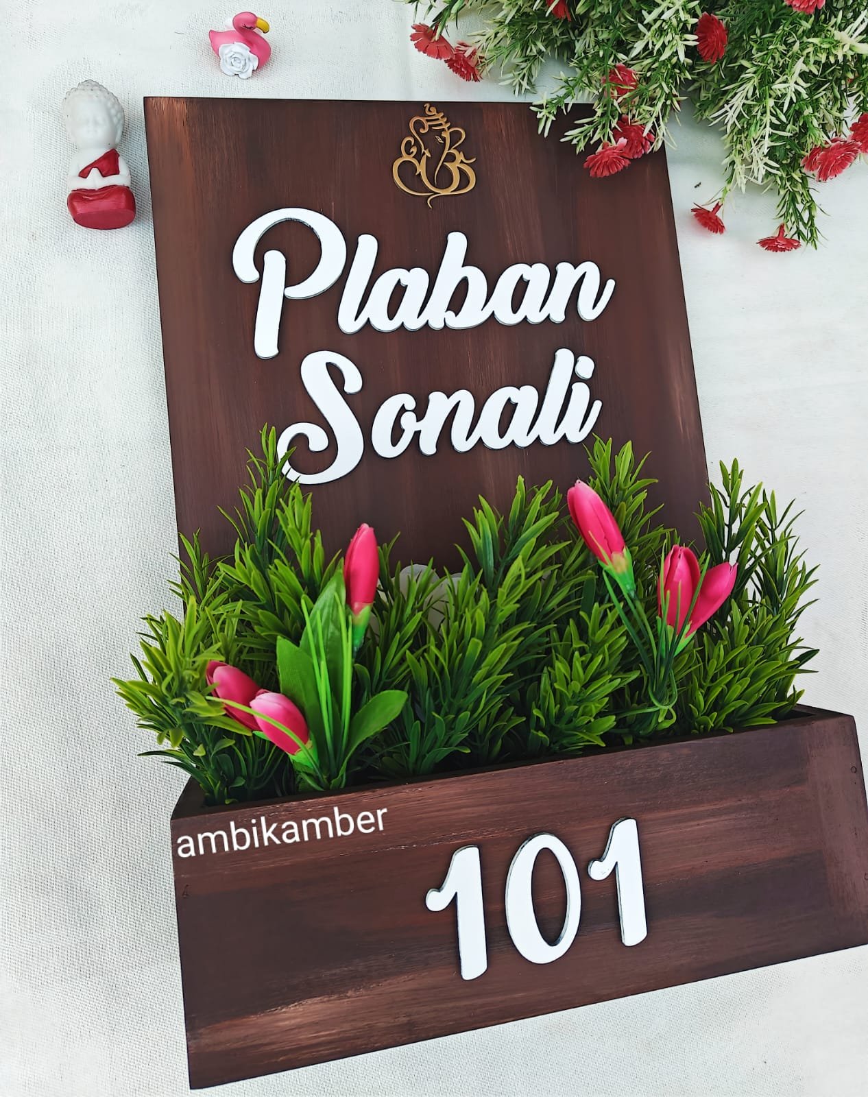 Comes in nice 12 by 18 inches with artificial flowers .
