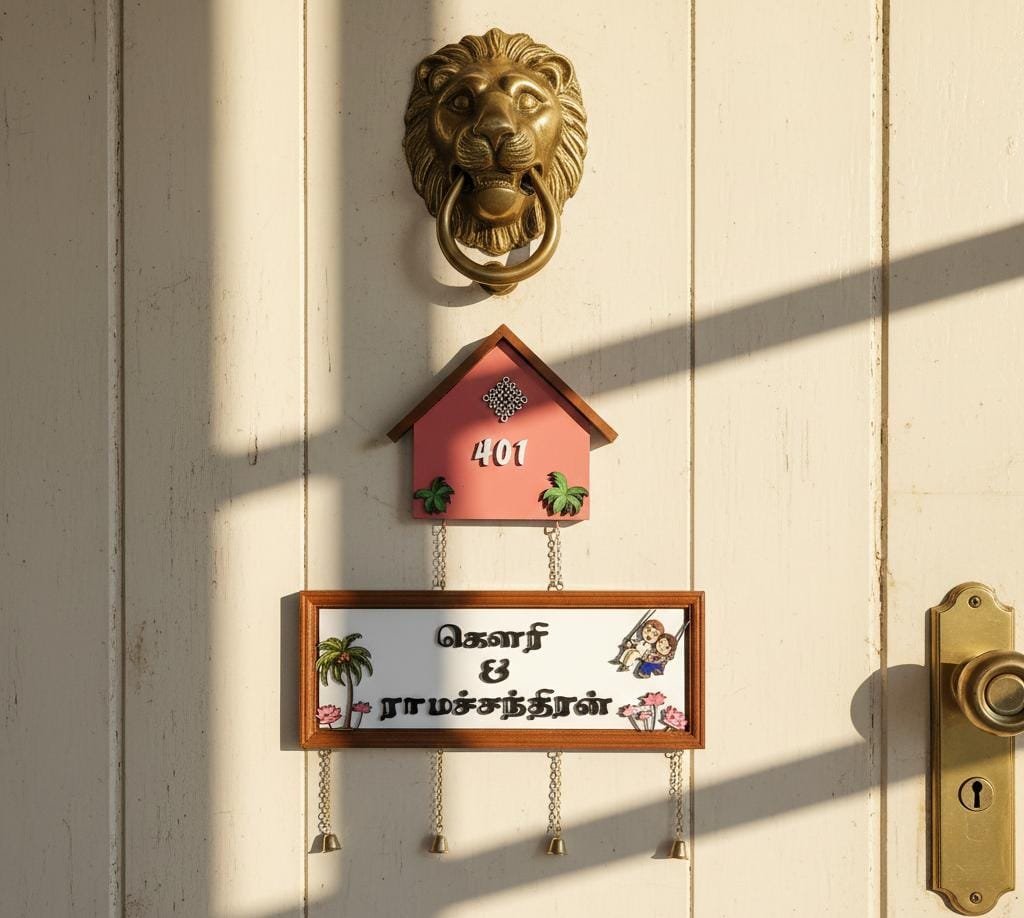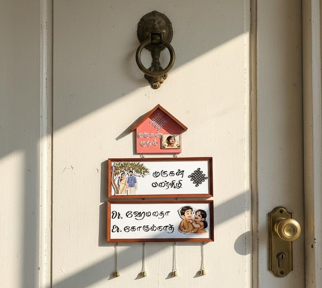 Give your entrance a stylish makeover with our Trendy Hut Plate with Metal Bells, designed to add a warm, inviting, and unique touch to your doorway. Crafted with high-quality materials, this hut-shaped nameplate features beautifully hand-attached metal bells that create a soft, soothing chime every time someone walks by — bringing positivity and elegance to your home.